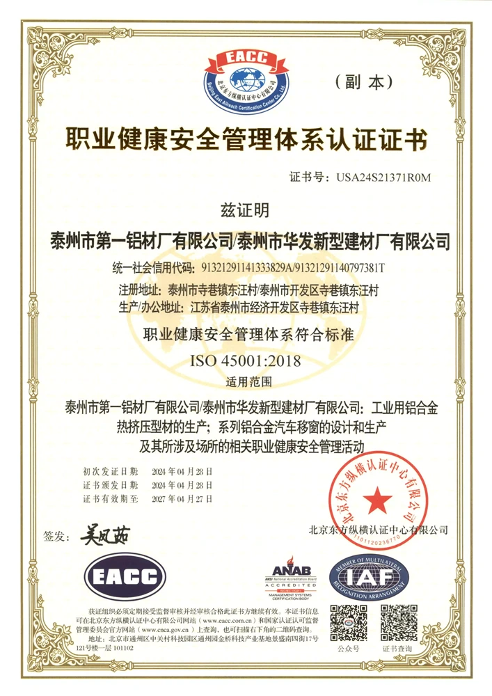 2001年5月18日,泰州市第一铝材厂有限公司正式成立。
